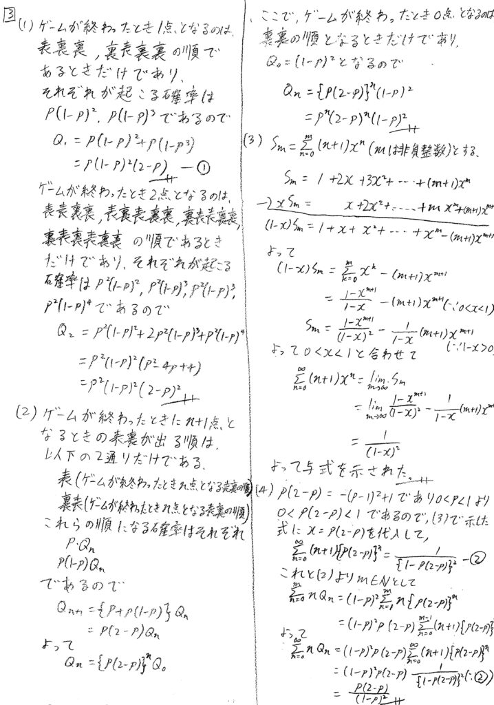 個人的には大問4(2)に最も苦戦しましたが、実験をして答えが1になることを分かったうえで、式変形をするといくらかはやりやすくなりました。