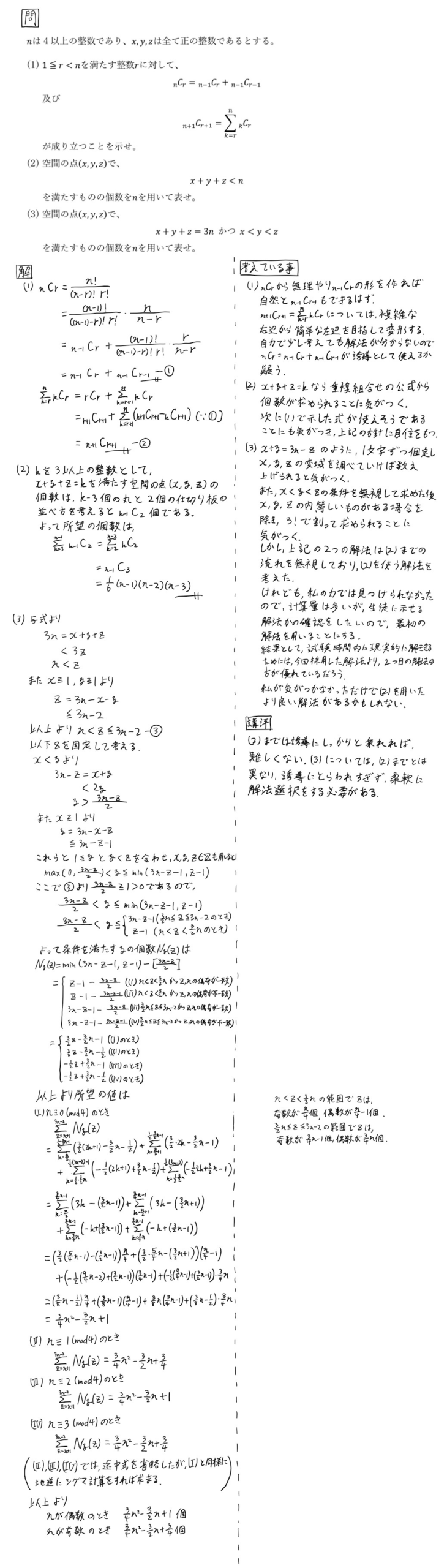 この補題のnが3になった命題の証明を、以前私は解いたことがあったので、比較的簡単に解けました。