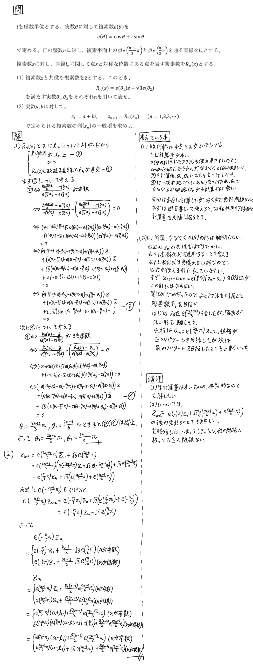 第四問は、複素数平面の問題でした。